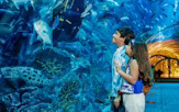Walk through the 48-meter aquarium tunnel as sharks glide above you and vibrant schools of fish shimmer like jewels all around.