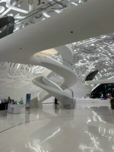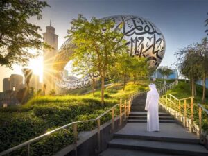 At the Museum of the Future, step into the year 2071 and experience a visionary future. The building itself is an architectural marvel, featuring calligraphic panels in an oblong design.